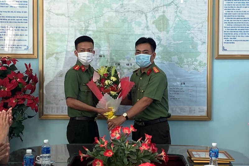 Bí thư Đoàn TN Công an tỉnh tặng hoa chúc mừng đồng chí Trần Minh Châu