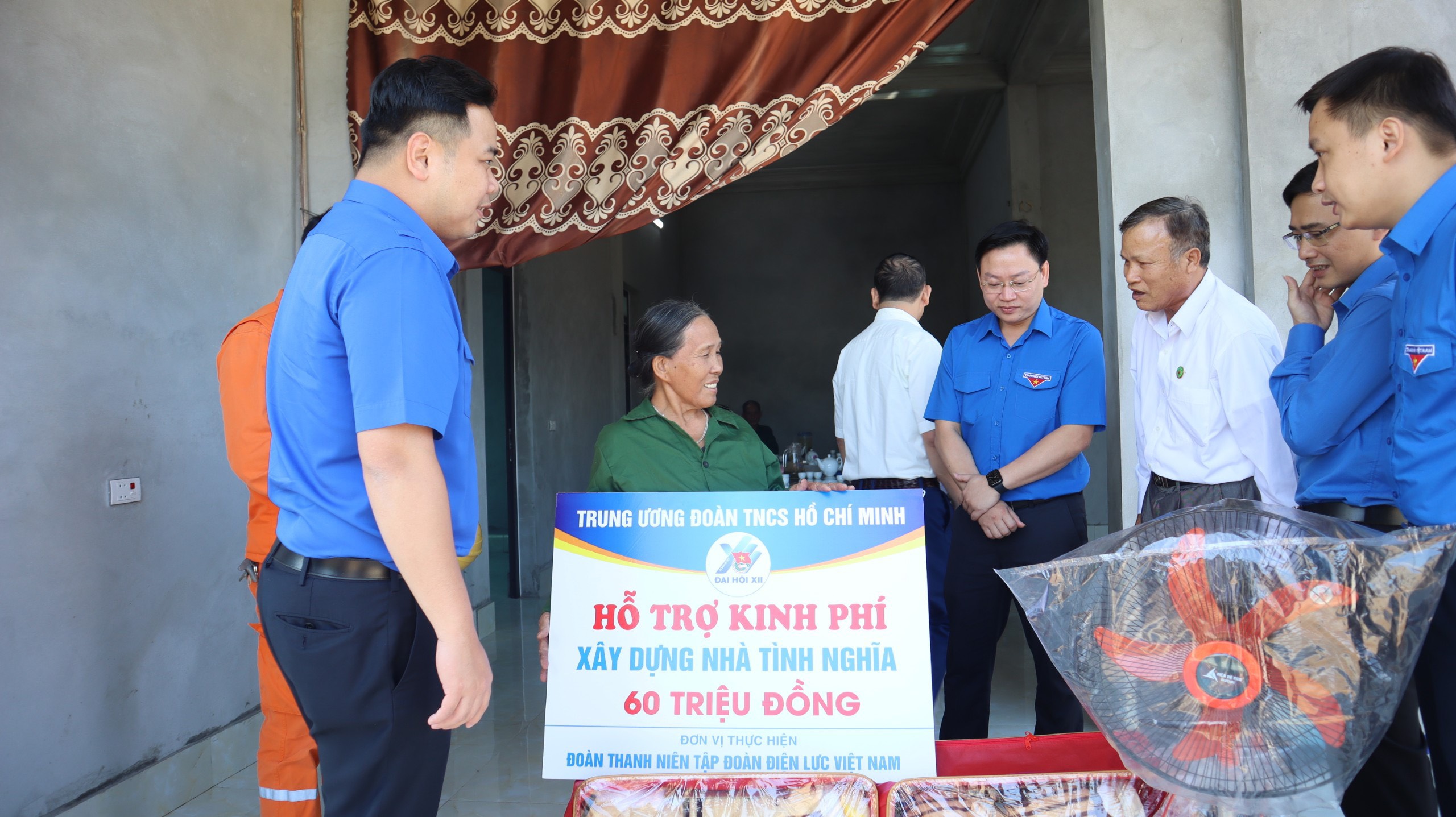 Đoàn công tác Trung ương Đoàn, Đoàn Thanh niên Tập đoàn Điện lực Việt Nam trao tặng kinh phí hỗ trợ xây dựng nhà tình nghĩa cho gia đình bà Dương Thị Cú)