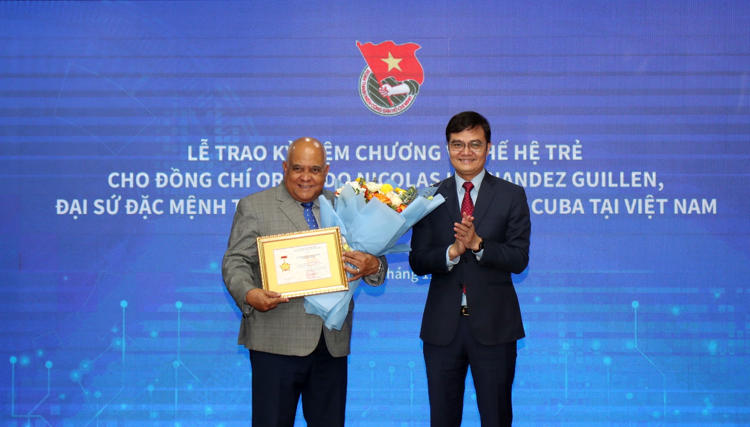 Dịp này, Ban Bí thư Trung ương Đoàn TNCS Hồ Chí Minh trao tặng Kỷ niệm chương “Vì thế hệ trẻ” cho Đại sứ Orlando Nicolás Hernández Guillén ghi nhận những đóng góp cùa Ngài Đại sứ đối với các hoạt động hợp tác thanh niên Việt Nam – Cuba trong thời gian qua.