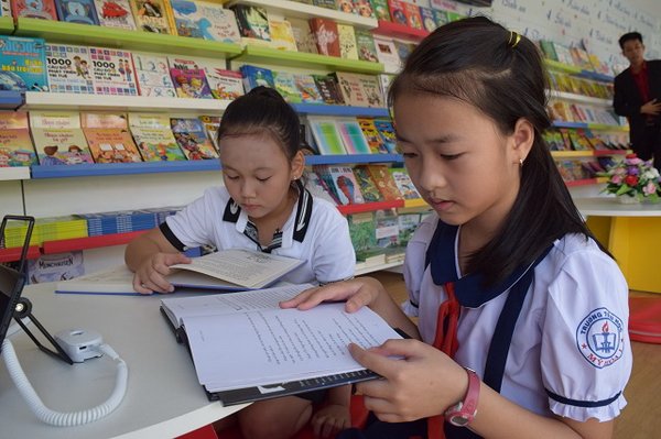 Các em đọc sách trong thư viện container |