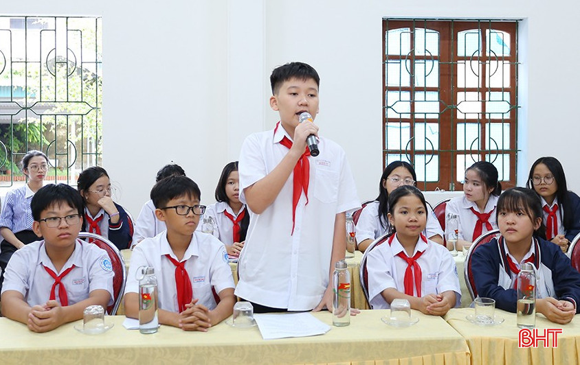 Đồng thời mong muốn các em chuẩn bị kỹ lưỡng, chu đáo các ý kiến tham gia tại các buổi thảo luận; tích cực tham gia các hoạt động của đoàn, thể hiện tính năng động, bản lĩnh, sáng tạo của đội viên, thiếu nhi Hà Tĩnh; tích cực giới thiệu về mảnh đất, văn hóa của đất và người Hà Tĩnh cho bạn bè cả nước…