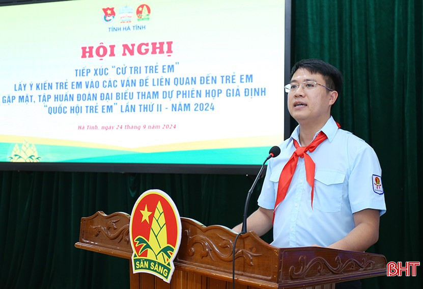 Hội nghị cũng đã nghe báo cáo của đoàn đại biểu về công tác chuẩn bị các điều kiện cần thiết để tham gia Phiên họp giả định “Quốc hội trẻ em” năm 2024. Theo đó, đoàn đại biểu trẻ em Hà Tĩnh gồm 5 đại biểu.