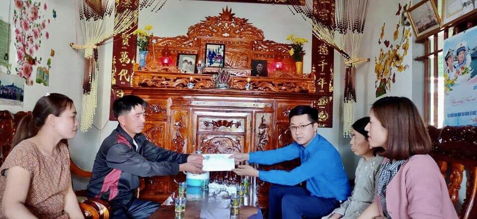 Tại gia đình thân nhân liệt sỹ Trần Văn Minh, Ban Thường vụ Huyện đoàn Quỳnh Lưu để trao bàn thờ mới và hỗ trợ tiền mặt với tổng trị giá là 15 triệu đồng.