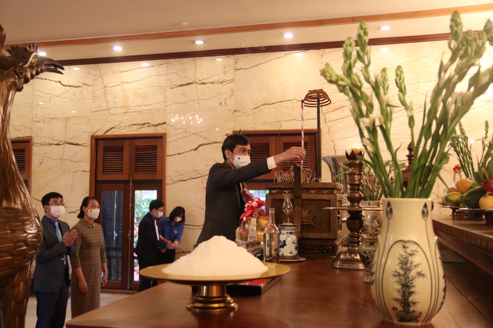 Đồng chí Bùi Quang Huy- Ủy viên Dự khuyết BCH Trung ương Đảng, Bí thư Thường trực Trung ương Đoàn cùng đoàn đại biểu dâng hương tại phòng thờ Bác Hồ