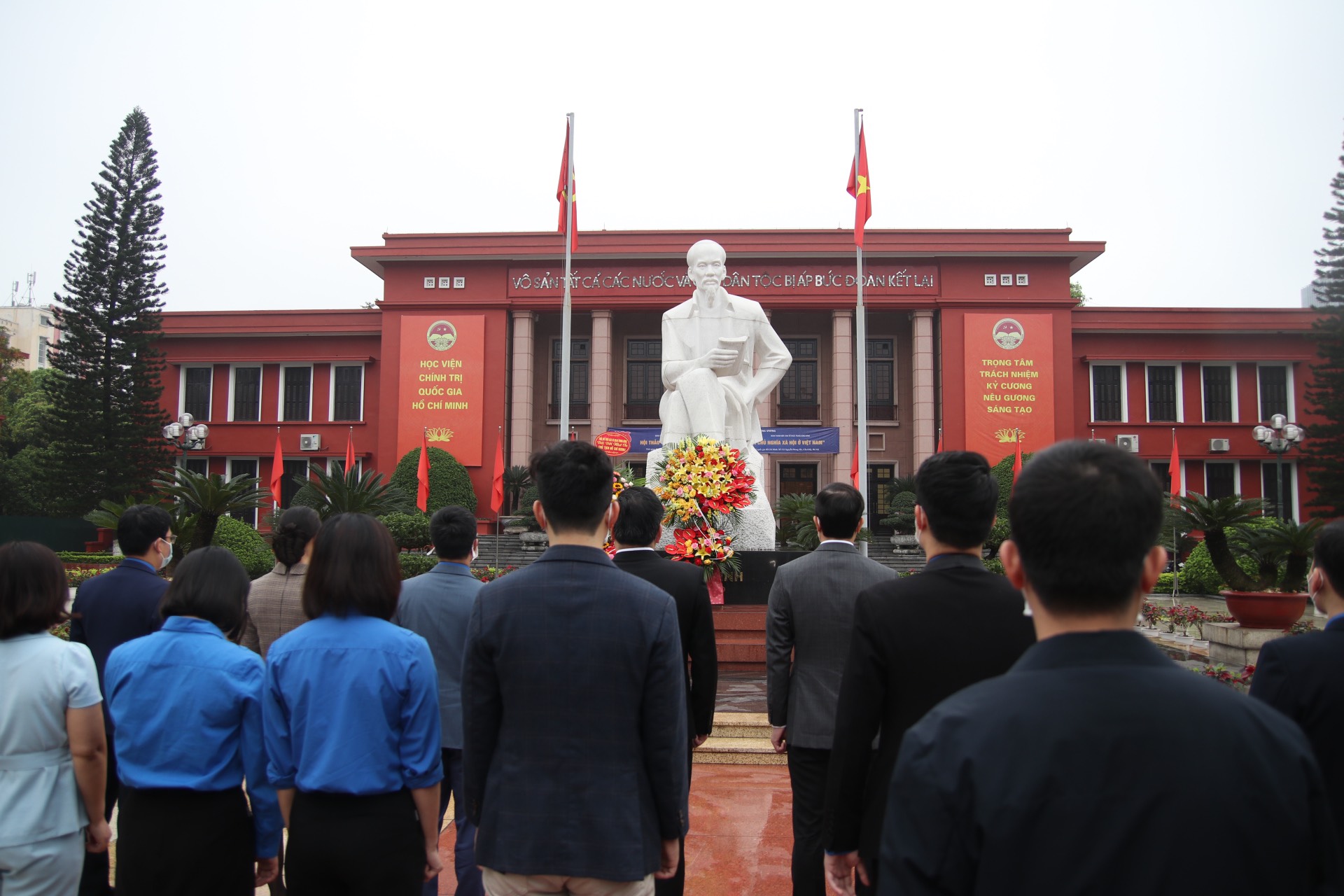 Trước khi diễn ra Hội thảo, các đồng chí lãnh đạo cùng đại diện các đồng chí Bí thư các Đoàn Thanh niên các đơn vị tham gia dâng hương tại tượng đài Bác Hồ.