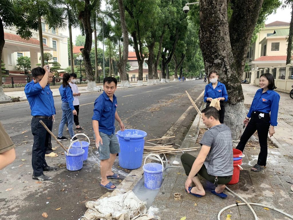 Đoàn viên Văn phòng Trung ương Đảng dọn dẹp vệ sinh tại trụ sở Nguyễn Cảnh Chân