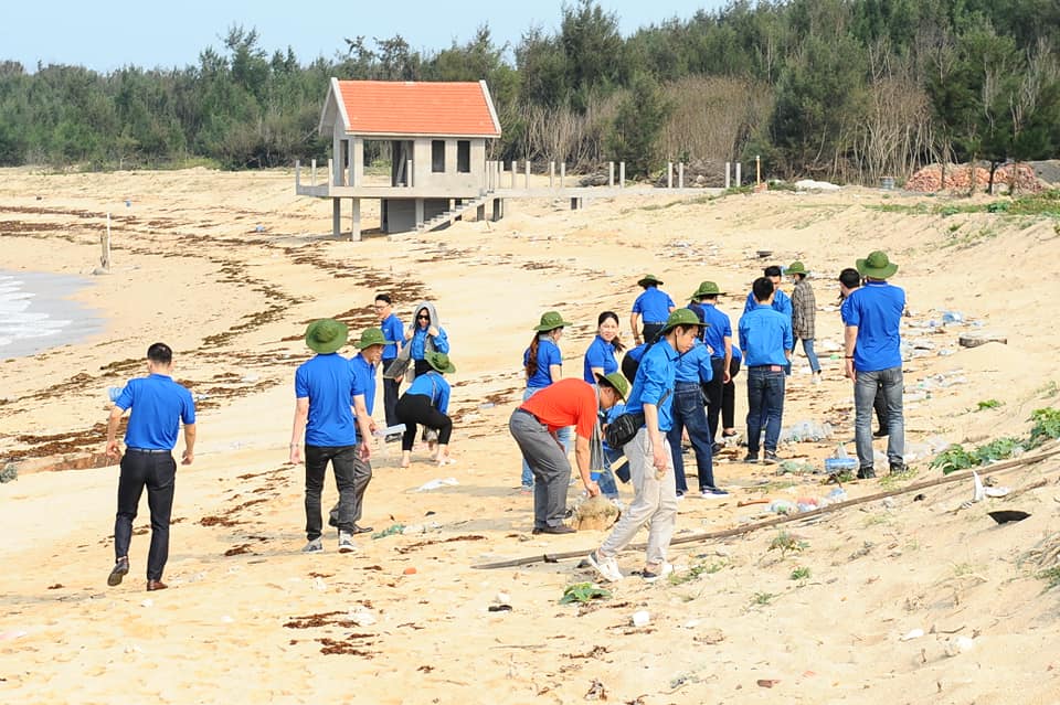 Đoàn viên Bộ Xây dựng tham gia dọn rác làm sạch biển Đảo Bạch Long Vỹ