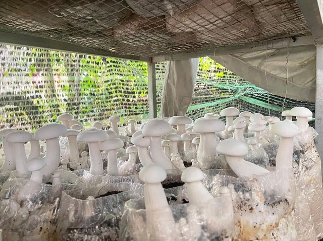 Nấm hồng ngọc được chị Nhớ trồng tại trại