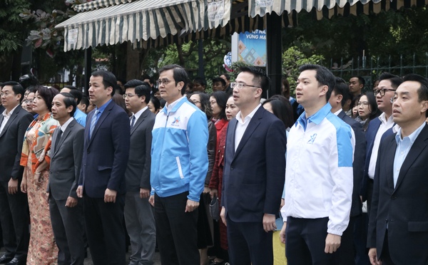 Ban Bí thư Trung ương Đoàn cùng tập thể cán bộ, công chức, viên chức cơ quan Trung ương Đoàn làm lễ chào cờ đầu tiên của năm Ất Tỵ 2025
