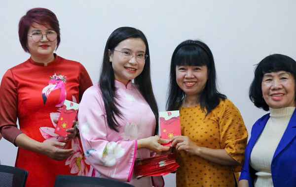 Đồng chí Nguyễn Phạm Duy Trang, Bí thư Trung ương Đoàn, Chủ tịch Hội đồng Đội Trung ương thăm, chúc Tết cán bộ đang làm việc tại phòng công tác đoàn phía Nam