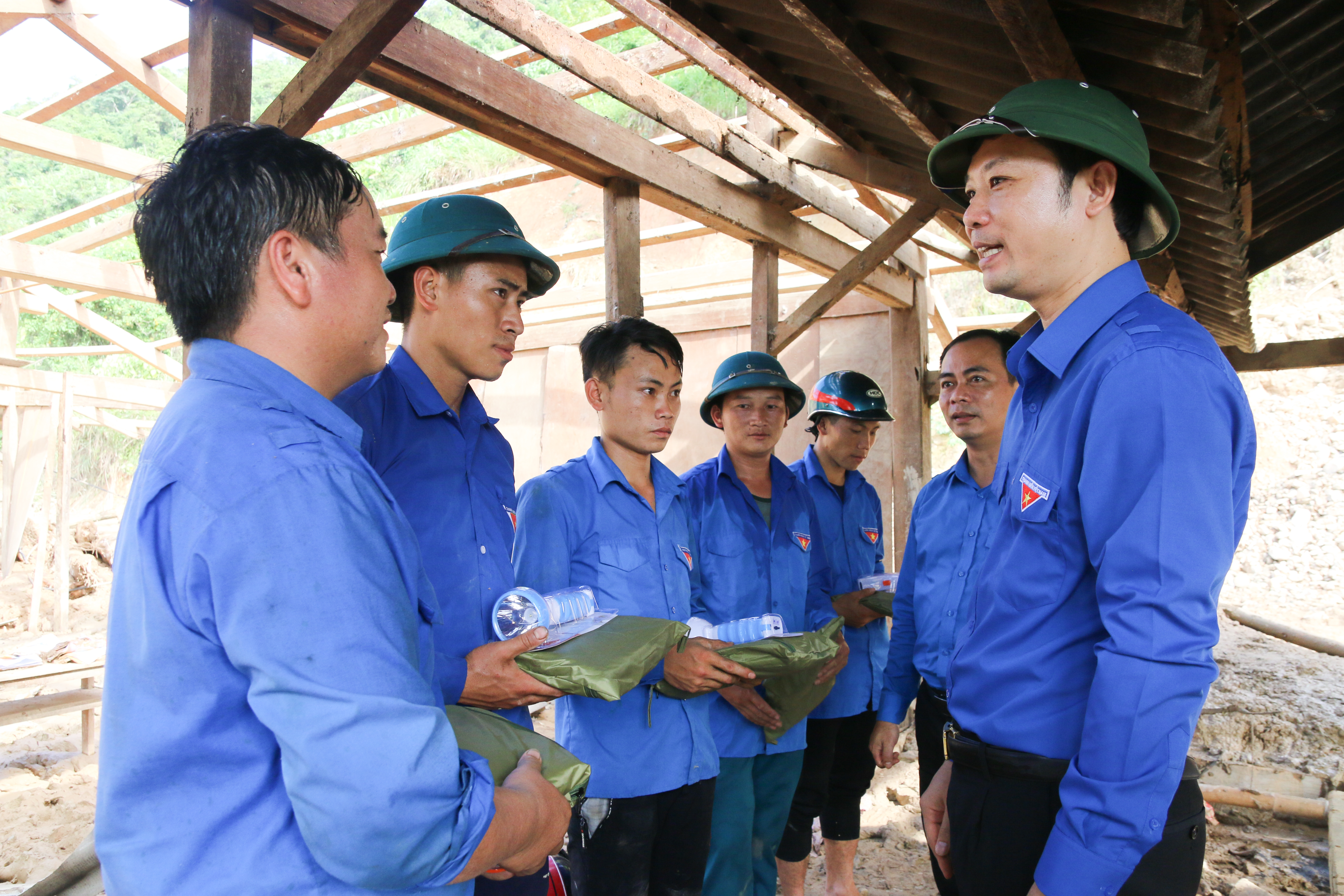 Đoàn công tác Trung ương Đoàn, Tỉnh đoàn động viên, tặng quà các thanh niên tình nguyện đang giúp nhân dân khắc phục hậu quả mưa lũ
