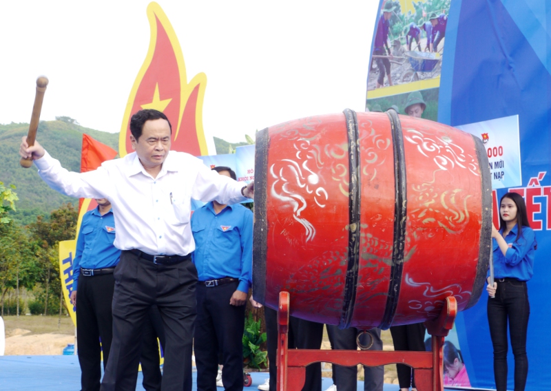 Bí thư Trung ương Đảng, Chủ tịch Ủy ban Trung ương MTTQ Việt Nam Trần Thanh Mẫn đánh trống phát lệnh khởi động Tháng Thanh niên 2019 trong tuổi trẻ cả nước