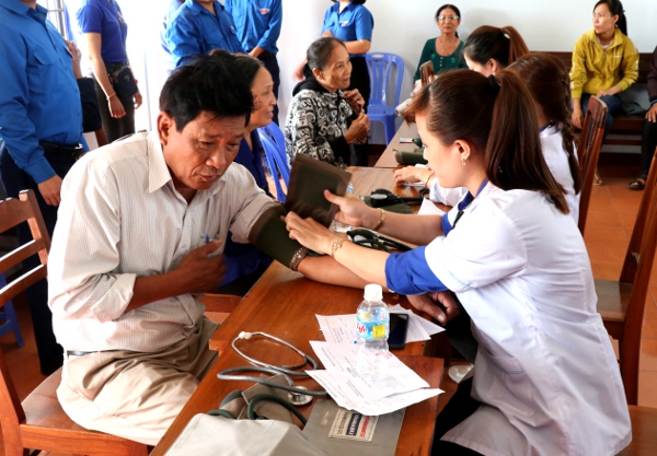 Các thầy thuốc trẻ tham gia khám bệnh, tư vấn sức khỏe cho người dân Bình Định