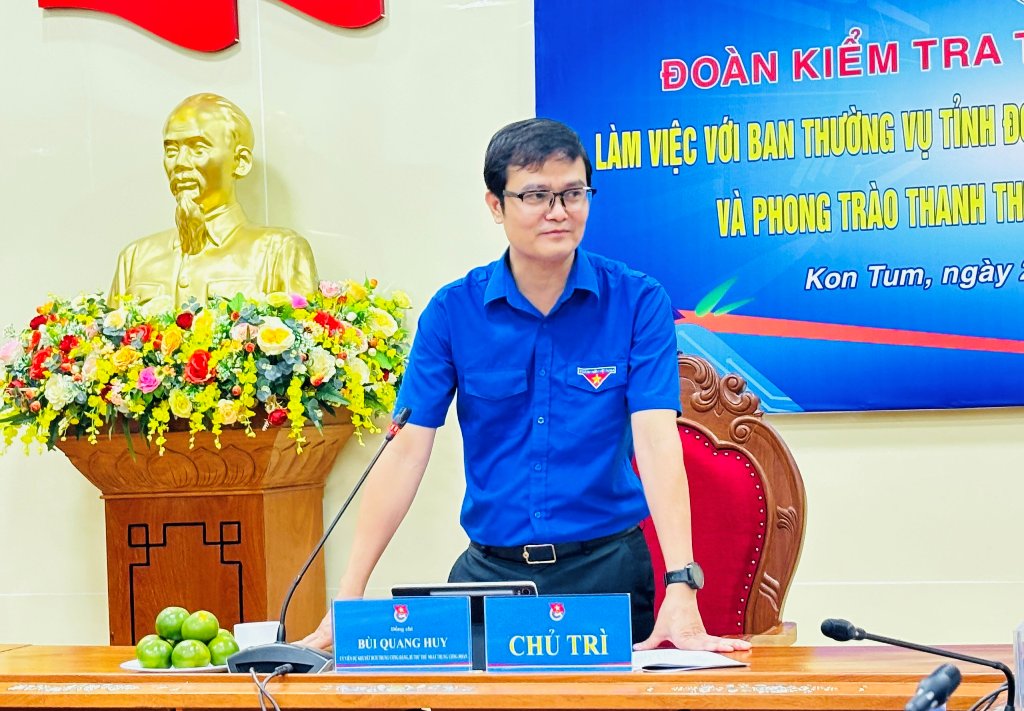 Kết luận tại buổi làm việc, đồng chí Bùi Quang Huy - Ủy viên dự khuyết BCH Trung ương Đảng, Bí thư thứ nhất BCH Trung ương Đoàn, Chủ nhiệm Ủy ban Quốc gia về Thanh niên Việt Nam đánh giá cao về tinh thần đoàn kết của tập thể Ban Thường vụ Tỉnh đoàn Kon Tum về thực hiện các nhiệm vụ chính trị, triển khai tốt chủ trương "3 liên kết" và thực hiện Kết luận số 08 – KL/TU, ngày 24/2/2021 của Ban Thường vụ Tỉnh ủy về chủ trương thực hiện và nội dung Cuộc vận động “Làm thay đổi nếp nghĩ cách làm trong vùng đồng bào DTTS, làm cho đồng bào DTTS vươn lên thoát nghèo bền vững”, xây dựng nông thôn mới, các mô hình phát triển kinh tế của thanh niên trong Chiến dịch Mùa hè Xanh và kết quả triển khai 6 tháng đầu năm 2024.