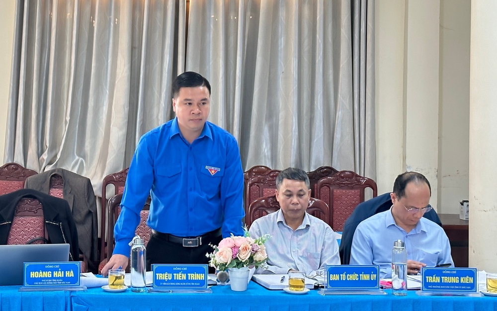 Đồng chí Triệu Tiến Trình - Bí thư Tỉnh đoàn Bắc Kạn phát biểu tại buổi làm việc