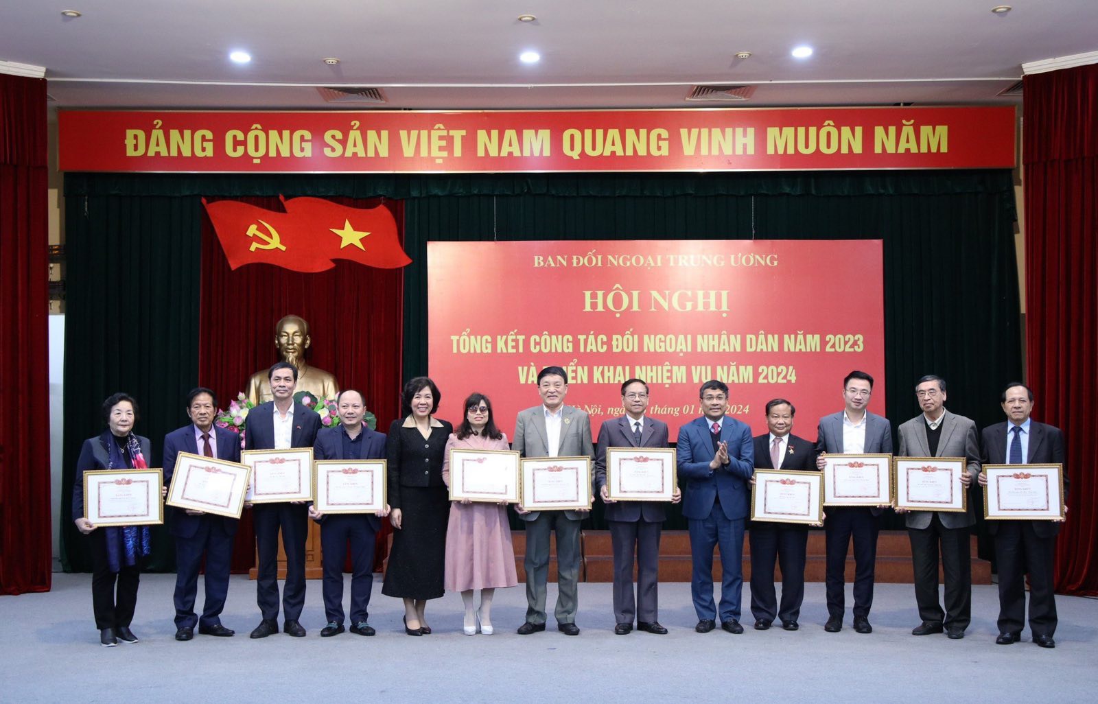 Tại Hội nghị, Ban Đối ngoại Trung ương tặng 5 Cờ thi đua và 39 Bằng khen cho các tập thể và cá nhân có thành tích xuất sắc trong công tác đối ngoại nhân dân năm 2023; tặng Kỷ niệm chương ‘Vì sự nghiệp Đối ngoại nhân dân’ cho 7 cá nhân có đóng góp tích cực cho công tác đối ngoại nhân dân trong thời gian qua; đồng thời phát động thi đua năm 2024.