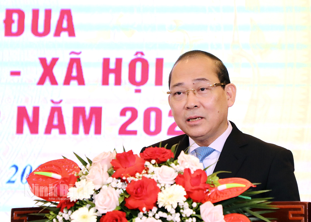 Đồng chí Bí thư Tỉnh ủy khẳng định: Hội nghị tổng kết Khối thi đua các tổ chức chính trị - xã hội và các tổ chức Liên hiệp được tổ chức tại tỉnh Ninh Bình là một hoạt động có ý nghĩa thiết thực, là cơ hội tốt để Ninh Bình được nghe các đại biểu chia sẻ những cách làm sáng tạo, hiệu quả trong thực hiện các phong trào thi đua yêu nước, góp phần phát huy sức mạnh nội sinh của các tầng lớp nhân dân, của đoàn viên, hội viên. Đặc biệt, trong bối cảnh sau gần 40 năm đổi mới, đất nước ta đang bước vào kỷ nguyên mới, định hình cơ cấu xã hội mới, chất lượng phát triển mới càng đòi hỏi phải đẩy mạnh các phong trào thi đua yêu nước của các giai cấp xã hội, gắn với cơ cấu lại tổ chức bộ máy, quyết tâm hoàn thành các mục tiêu, kế hoạch đã đề ra.