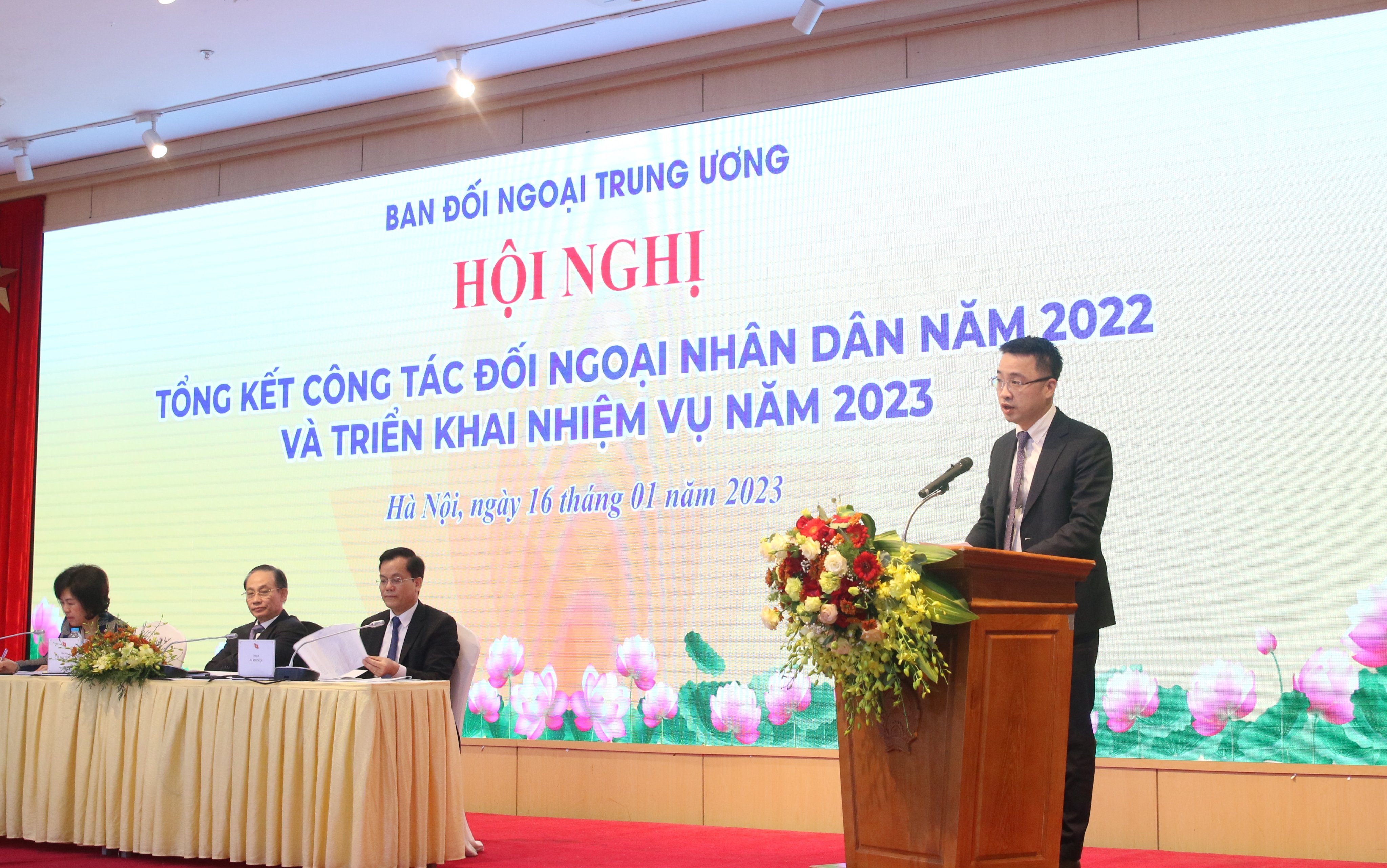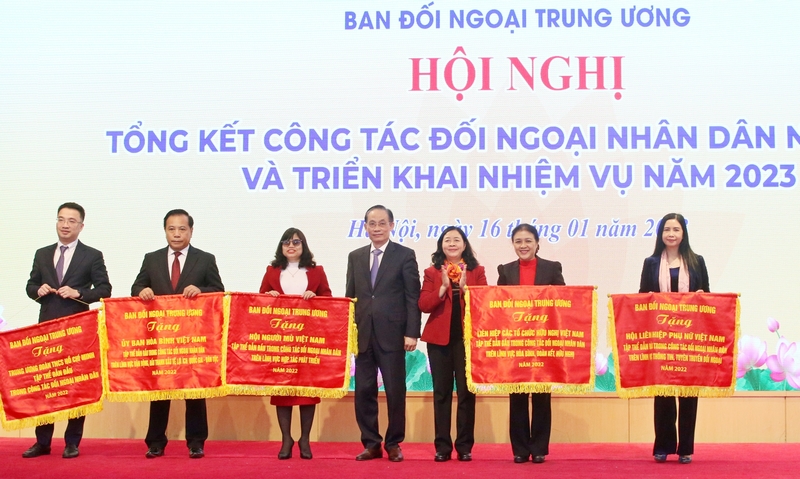 Sáng 16/1, tại Hà Nội, Ban Đối ngoại Trung ương tổ chức Hội nghị Tổng kết công tác đối ngoại nhân dân năm 2022, triển khai nhiệm vụ năm 2023. Gần 300 đại biểu là lãnh đạo và cán bộ làm công tác đối ngoại nhân dân của Mặt trận Tổ quốc Việt Nam, các đoàn thể và tổ chức nhân dân ở Trung ương, đại diện các ban, bộ, ngành ở Trung ương đã tham dự Hội nghị.