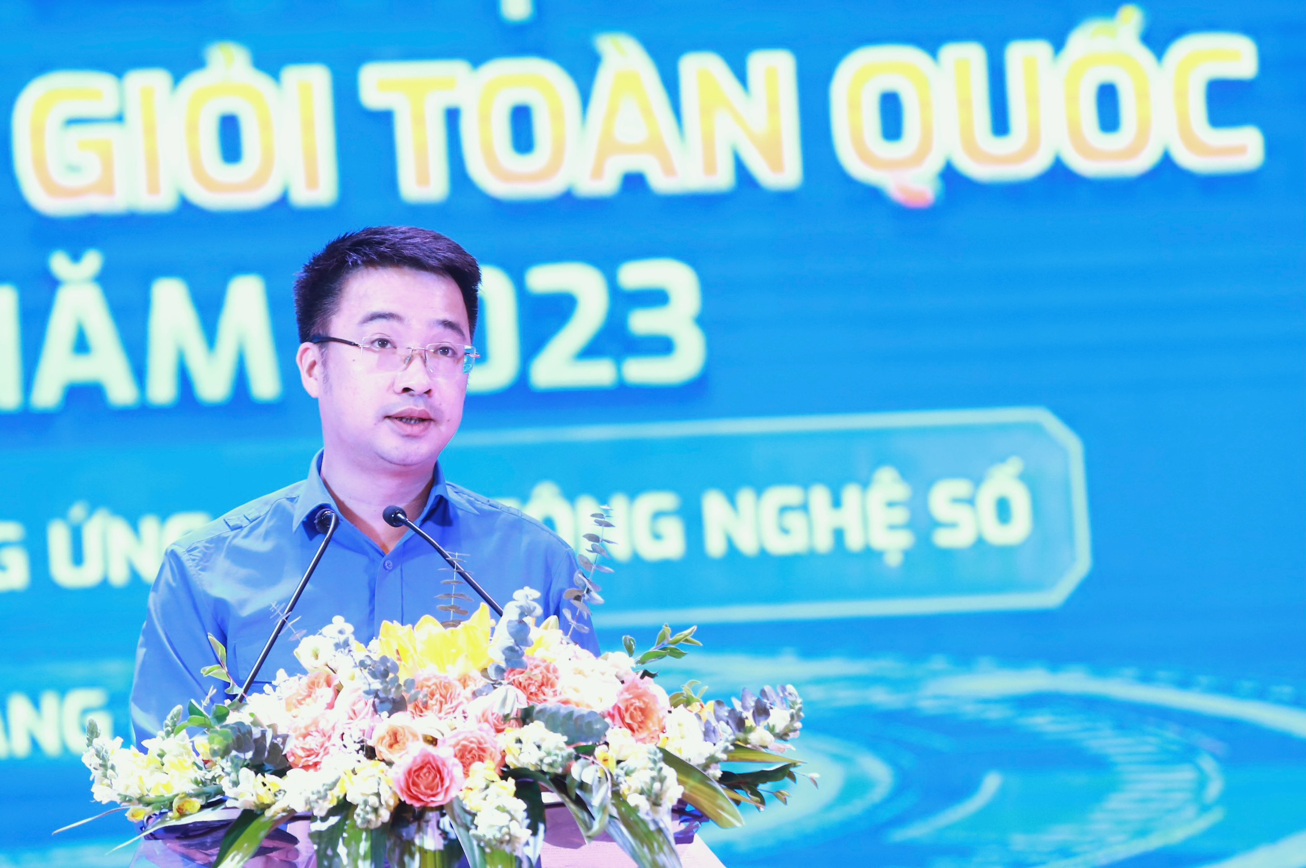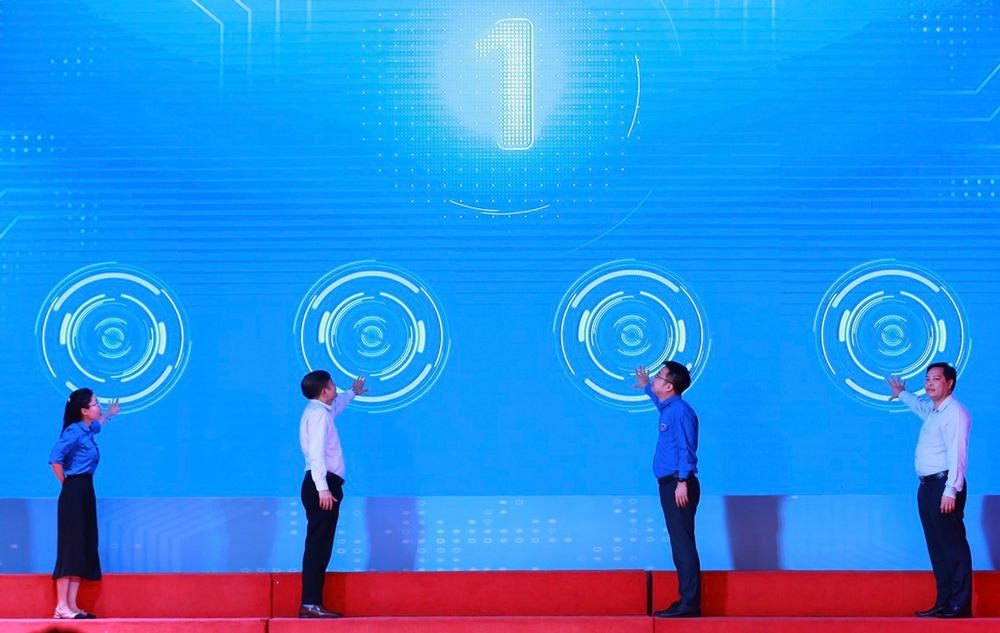Đồng chí Nguyễn Tường Lâm, Bí thư TƯ Đoàn động viên các bạn đoàn viên thanh niên tham gia hưởng ứng cuộc thi ngay sau lễ phát động