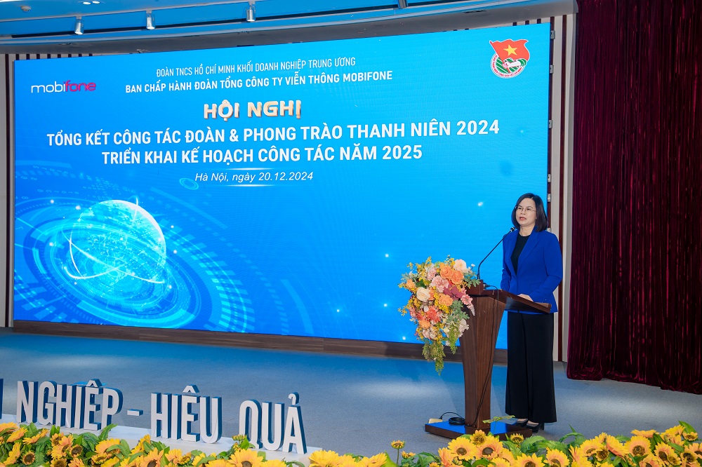 Chiều ngày 20/12, Đoàn Thanh niên Tổng Công ty Viễn thông Mobifone tổ chức Hội nghị tổng kết công tác đoàn và phong trào thanh niên năm 2024, triển khai nhiệm vụ công tác năm 2025. Tham dự có đồng chí Hoàng Thị Minh Thu, Ủy viên Ban Thường vụ TW Đoàn, Ủy viên BCH Đảng bộ Khối, Bí thư Đoàn Khối DNTW; đồng chí Lã Công Huấn, Phó Trưởng Ban Tuyên giáo Đảng uỷ TCT Viễn thông MobiFone.
