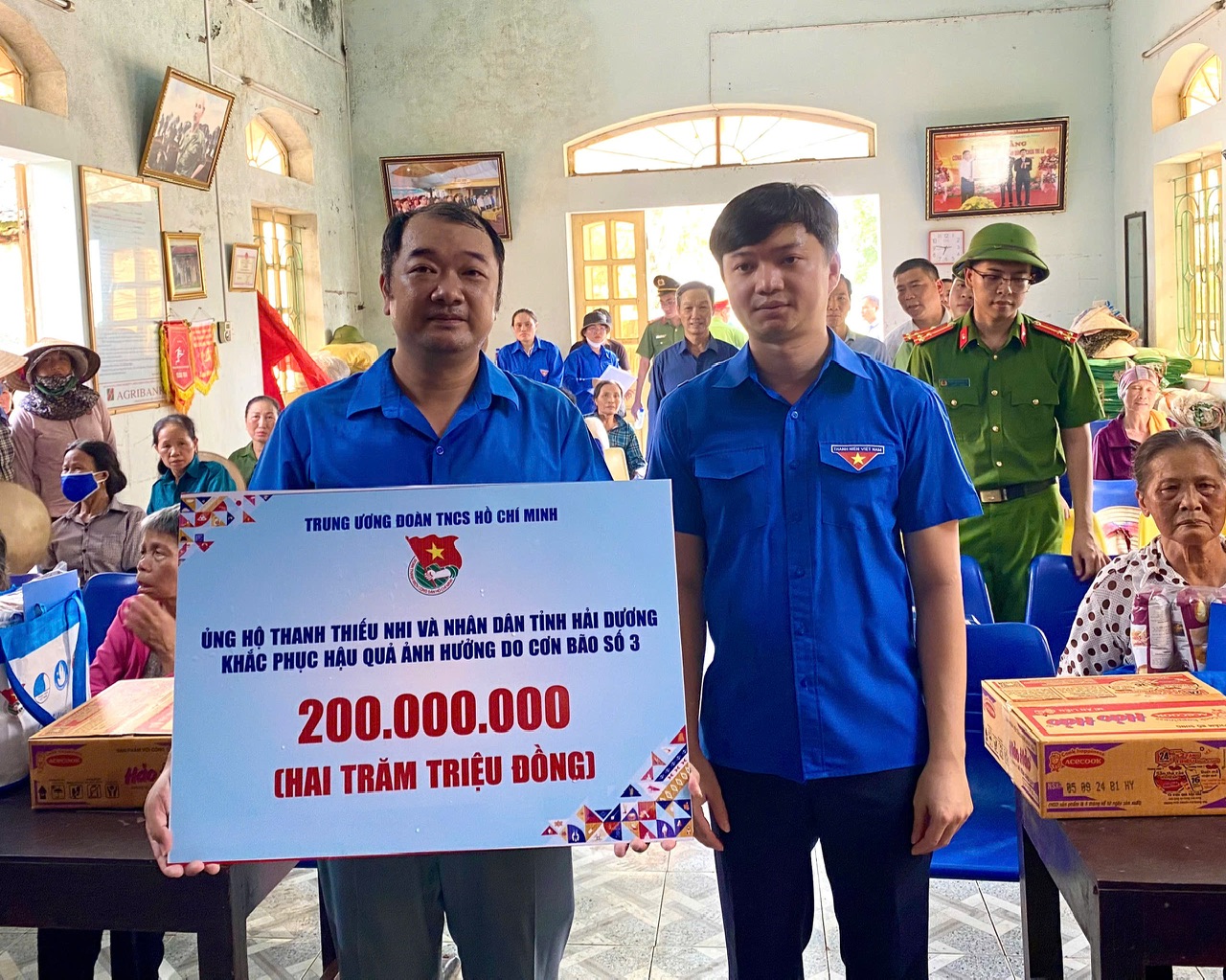 Nhân dịp này, Trung ương Đoàn, Hội LHTN Việt Nam, Hội Sinh viên Việt Nam, Hội đồng Đội Trung ương đã trao tặng 300 triệu đồng tiền mặt, 200 thùng xúc xích trị giá 96 triệu đồng; 100 kg Cloramin B trị giá 20 triệu đồng và các nhu yếu phẩm cần thiết khác.