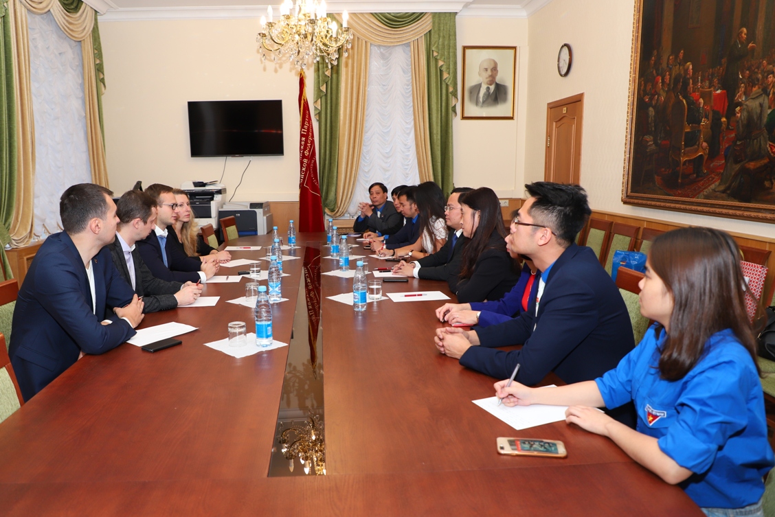 Đồng chí Isakov, Ủy viên Trung ương Đảng Cộng sản Liên bang Nga, Bí thư thứ nhất Ban Chấp hành Trung ương Đoàn TNCS Lê Nin đã thân mật tiếp đoàn.