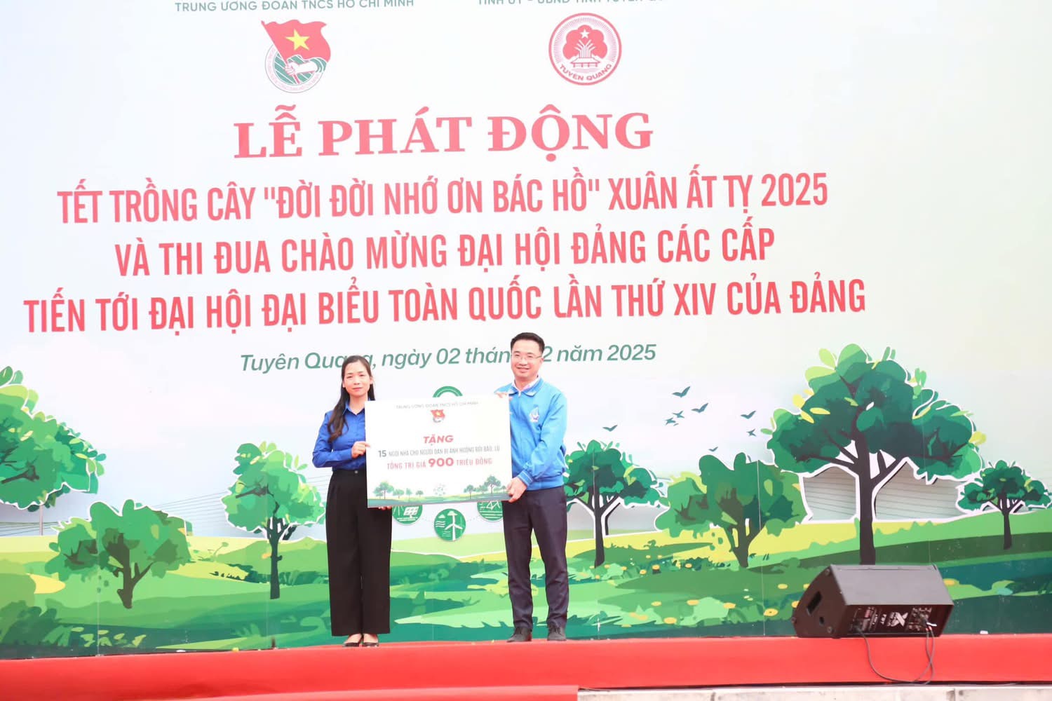 Đồng chí Nguyễn Tường Lâm, Bí thư Trung ương Đoàn, Chủ tịch Hội Liên hiệp Thanh niên Việt Nam trao tặng 15 nhà cho người dân bị ảnh hưởng bởi lụt bão tại lễ phát động