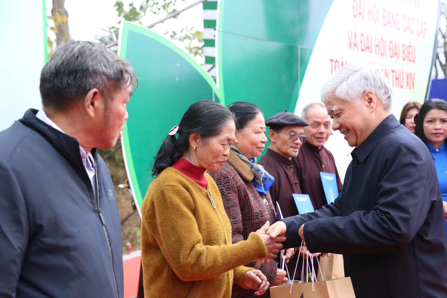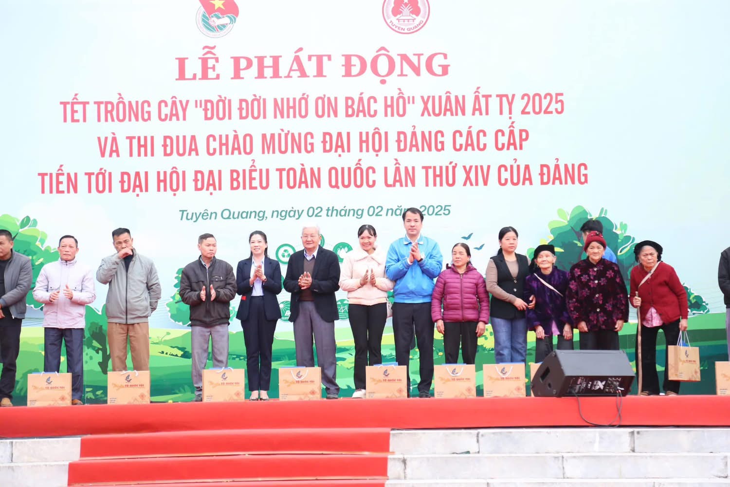 Đồng chí Nguyễn Đắc Vinh, Uỷ viên BCH Trung ương Đảng, Uỷ viên Uỷ ban Thường vụ Quốc hội, Chủ nhiệm Uỷ ban Văn hoá, Giáo dục của Quốc hội và đồng chí chí Hà Thị Nga, Ủy viên BCH Trung ương Đảng, Bí thư Tỉnh ủy Tuyên Quang trao quà cho các gia đình chính sách tại lễ phát động