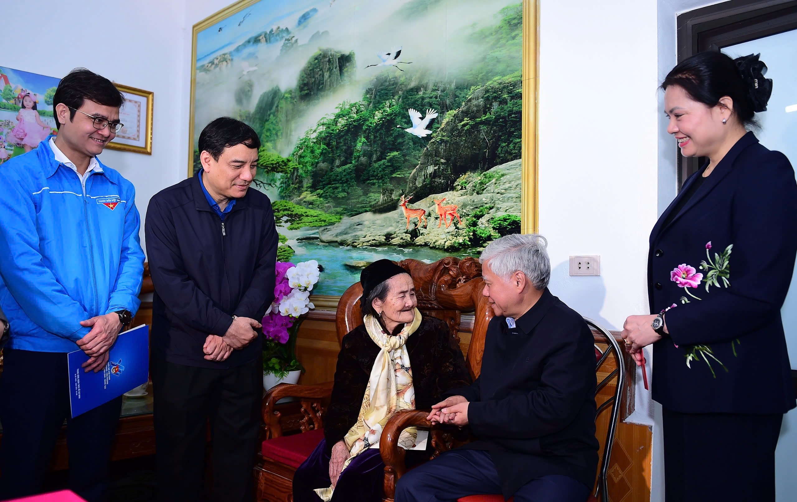 Đồng chí Đỗ Văn Chiến, Ủy viên Bộ Chính trị, Bí thư Trung ương Đảng, Chủ tịch Ủy ban Trung ương Mặt trận Tổ quốc Việt Nam và đồng chí Bùi Quang Huy, Uỷ viên dự khuyết BCH Trung ương Đảng, Bí thư thứ nhất Trung ương Đoàn trao quà cho những cá nhân người có uy tín trong cộng đồng tại lễ phát động