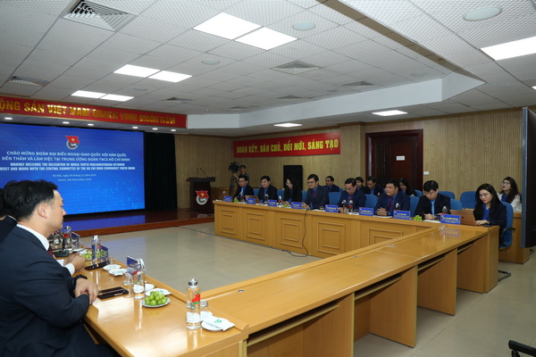 Quang cảnh buổi tiếp đoàn Đại biểu Ngoại giao Quốc hội Hàn Quốc thăm và làm việc tại Trung ương Đoàn TNCS Hồ Chí Minh