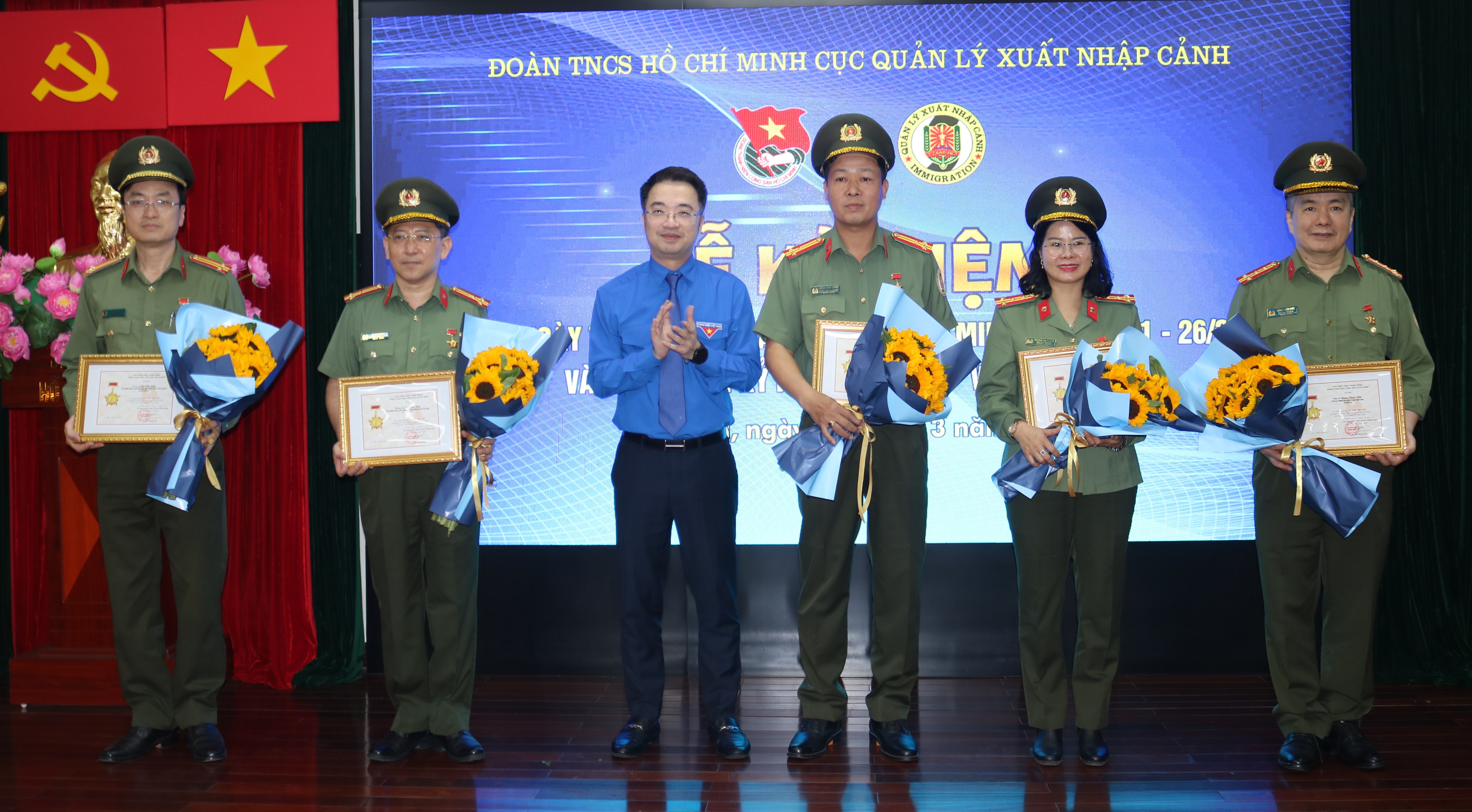 Đồng chí Nguyễn Tường Lâm trao tặng Kỷ niệm chương "Vì thế hệ trẻ" cho cán bộ Cục Quản lý xuất nhập cảnh