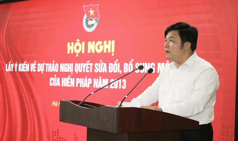 Tại hội nghị, đồng chí Nguyễn Thái An, Ủy viên Ban Thường vụ, Trưởng ban Tuyên giáo Trung ương Đoàn trình bày báo cáo tổng hợp ý kiến góp ý của Đoàn TNCS Hồ Chí Minh đối với dự thảo Nghị quyết sửa đổi, bổ sung một số điều của Hiến pháp năm 2013.