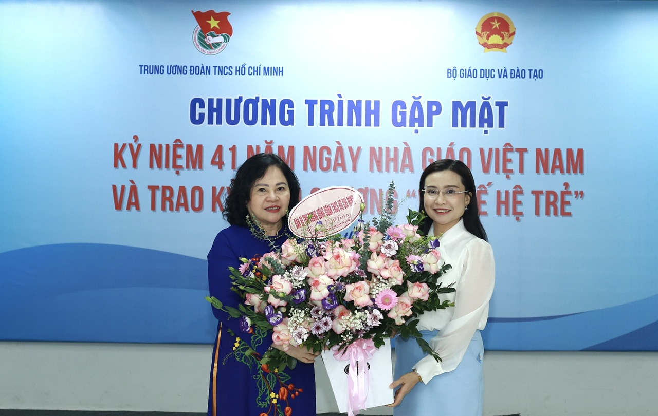Trong không khí đầm ấm và tình cảm, Ban Bí thư Trung ương Đoàn đã trao tặng bó hoa tươi thắm tới đồng chí Ngô Thị Minh, Ủy viên Ban Cán sự Đảng, Thứ trưởng Bộ Giáo dục và Đào tạo nhân dịp ý nghĩa này, thay lời cảm ơn và ghi nhận sự quan tâm hỗ trợ, đồng hành của các đồng chí lãnh đạo, cán bộ của Bộ Giáo dục và Đào tạo với công tác đoàn và phong trào thanh thiếu nhi.