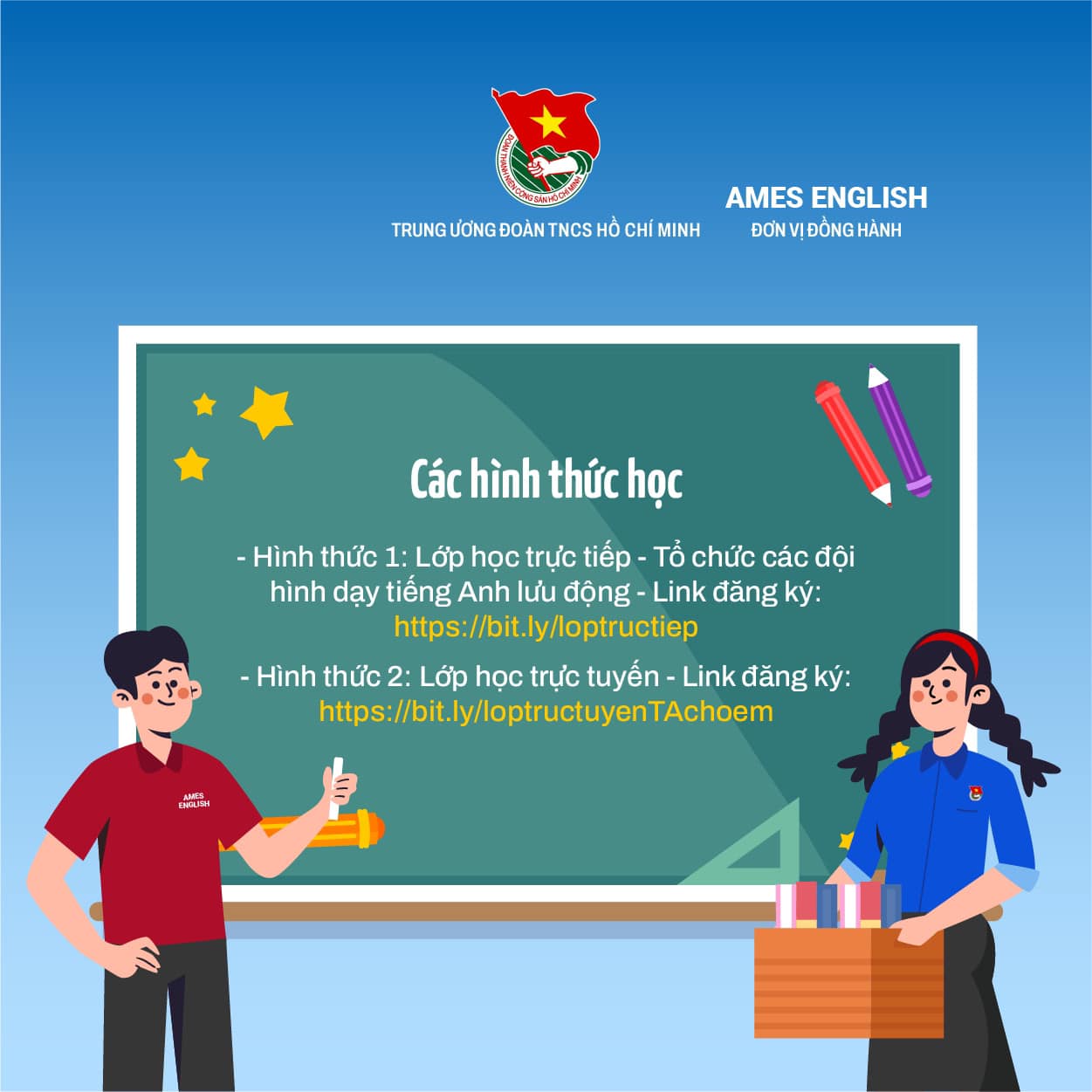 Lớp học trực tiếp: Phối hợp với cơ sở Đoàn tổ chức các đội hình dạy tiếng Anh lưu động về từng địa phương dạy tiếng Anh cho các em nhỏ trên 16 tỉnh thành phố https://bit.ly/loptructiep