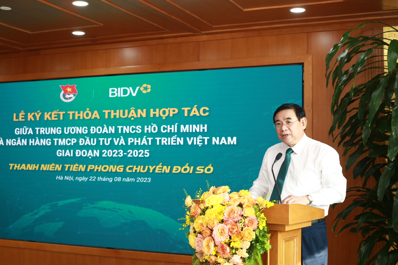 Đồng chí Phan Đức Tú, Chủ tịch Hội đồng quản trị BIDV cho biết, Đoàn thanh niên BIDV và T.Ư Đoàn đã xây dựng và phát triển mối quan hệ trong nhiều năm qua. Theo ông Tú, Đoàn thanh niên BIDV là một trong những tổ chức Đoàn luôn tiên phong trong việc triển khai các phong trào, hoạt động do T.Ư Đoàn khởi xướng và là lực lượng trẻ, sẵn sàng cống hiến nhiệt huyết, tri thức, sáng tạo trong việc triển khai các nhiệm vụ chính trị của BIDV. Nổi bật trong đó là chiến lược chuyển đổi số của BIDV; góp phần thúc đẩy tăng cường dịch vụ thanh toán không dùng tiền mặt theo mục tiêu của chương trình chuyển đổi số Quốc gia.