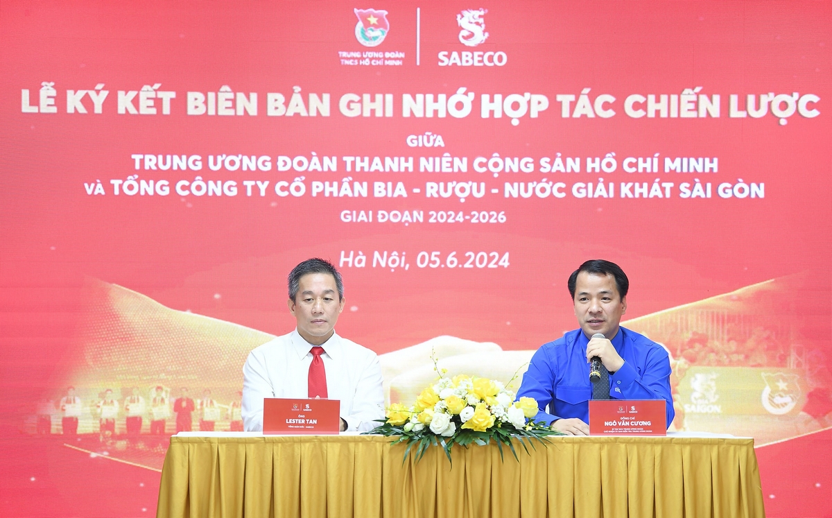 Sáng 05/6, tại Hà Nội, Trung ương Đoàn TNCS Hồ Chí Minh và Tổng công ty Cổ phần Bia - Rượu - Nước giải khát Sài Gòn (Sabeco) đã tổ chức Lễ ký kết biên bản ghi nhớ hợp tác giai đoạn 2024 - 2026.