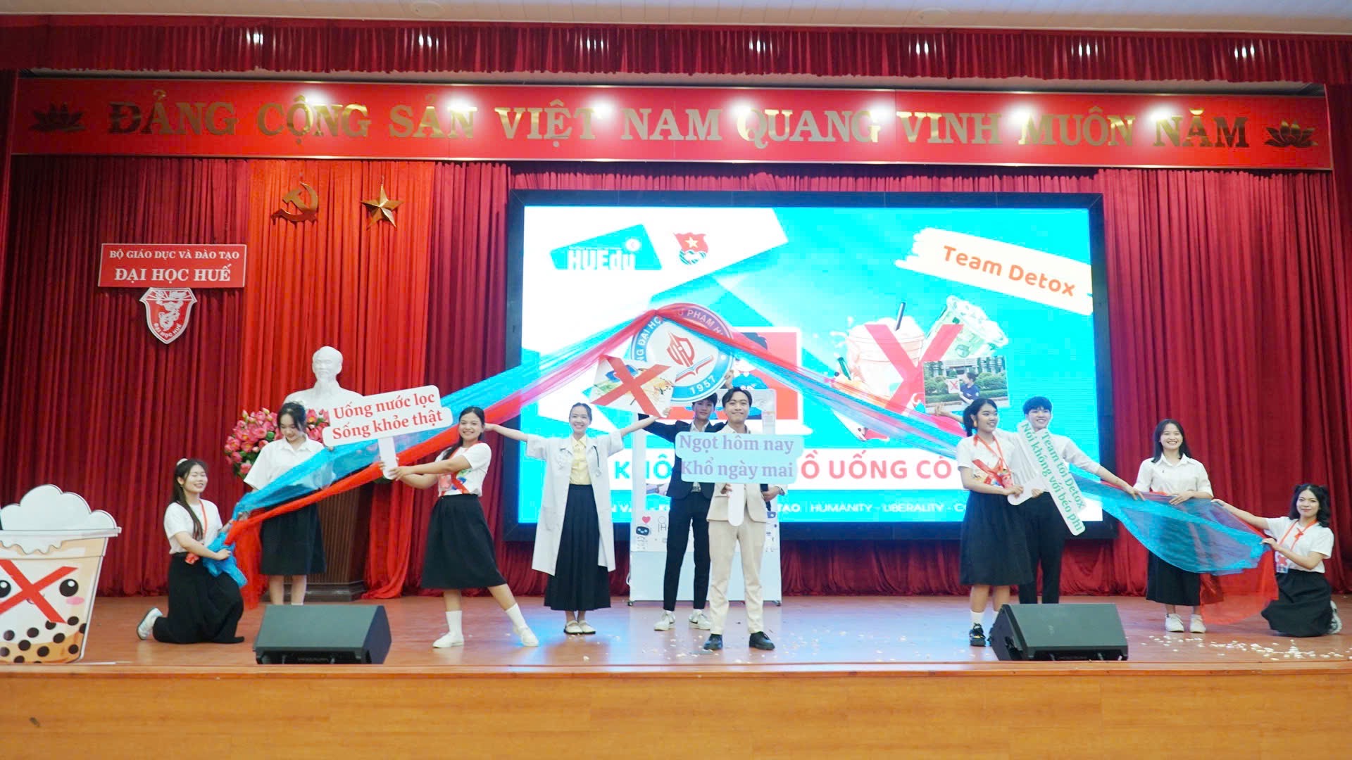 Với sáng kiến đầy sáng tạo “Giảm đường hôm nay – Sức khỏe ngày mai”, Trường Đại học Ngoại ngữ đã chinh phục Ban Giám khảo không chỉ bởi phần trình bày ấn tượng mà còn bởi tính thực tiễn cao, dễ dàng triển khai trong cộng đồng sinh viên.