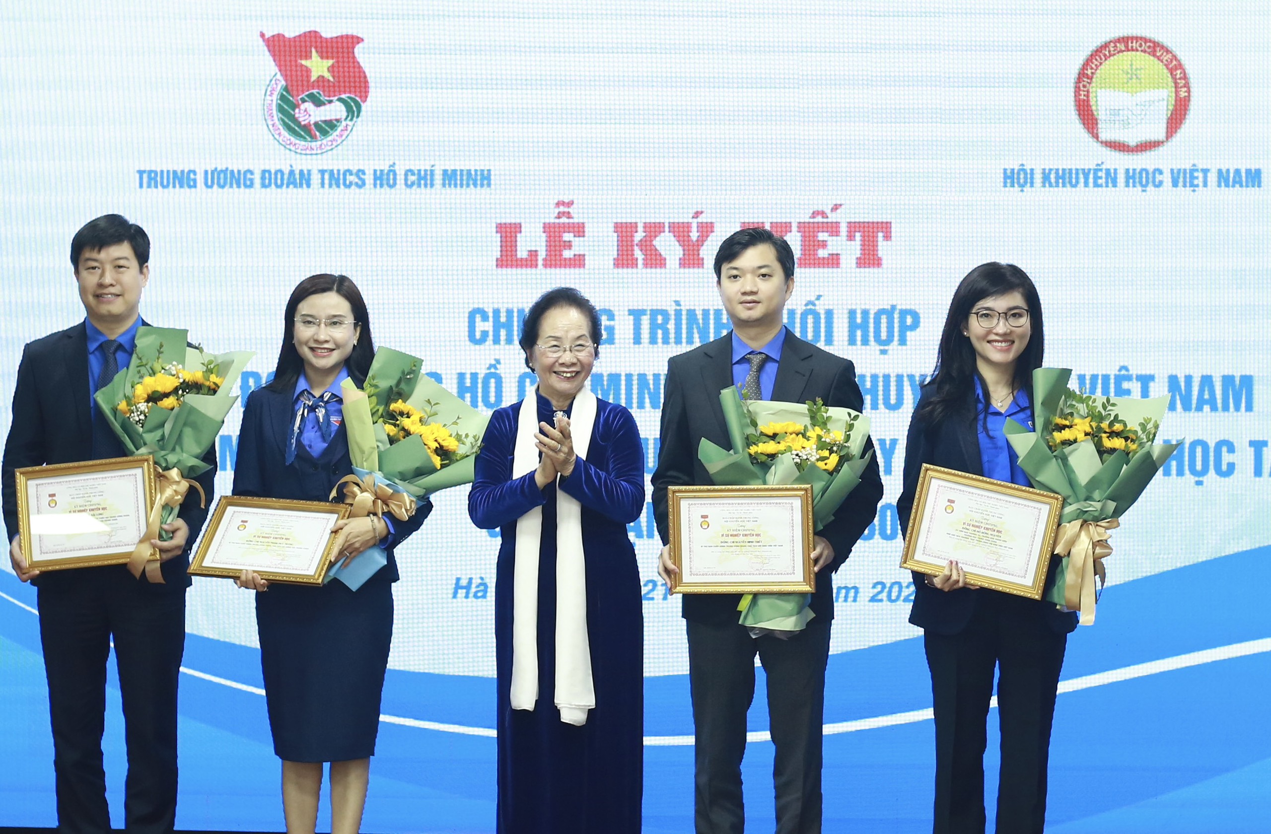 Dịp này, nhằm ghi nhận, tôn vinh và biểu dương các cá nhân đã có nhiều đóng góp cho phong trào thanh thiếu nhi và công tác khuyến học, Hội Khuyến học Việt Nam quyết định trao Kỷ niệm chương Kỷ niệm chương “ Vì sự nghiệp khuyến học” cho 4 cán bộ T.Ư Đoàn, gồm: đồng chí Nguyễn Phạm Duy Trang - Bí thư T.Ư Đoàn, Chủ tịch Hội đồng Đội T.Ư; đồng chí Nguyễn Minh Triết - Bí thư T.Ư Đoàn, Chủ tịch T.Ư Hội Sinh viên Việt Nam; đồng chí Lê Hải Long - Ủy viên BTV, Trưởng ban Công tác thiếu nhi T.Ư Đoàn, Phó Chủ tịch thường trực Hội đồng Đội T.Ư; đồng chí Hồ Hồng Nguyên - Ủy viên BTV, Trưởng ban Thanh niên Trường học T.Ư Đoàn, Phó Chủ tịch thường trực T.Ư Sinh viên Việt Nam. T.Ư Đoàn trao Kỷ niệm chương “Vì thế hệ trẻ” cho 4 cán bộ Hội Khuyến học Việt Nam.