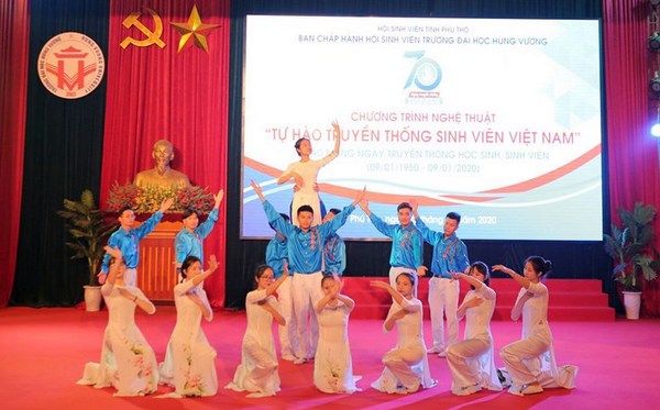 Chương trình nghệ thuật chào mừng kỷ niệm 70 năm ngày truyền thống học sinh, sinh viên với chủ đề: "Tự hào truyền thống sinh viên Việt Nam" đã được tổ chức tại trường Đại học Hùng Vương.