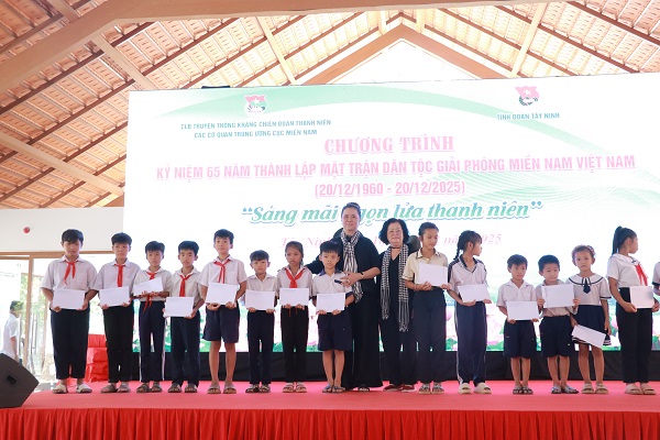 Câu lạc bộ Truyền thống Kháng chiến Đoàn Thanh niên các Cơ quan Trung ương Cục miền Nam đã trao tặng học bổng cho các em thiếu nhi vượt khó, vươn lên học giỏi
