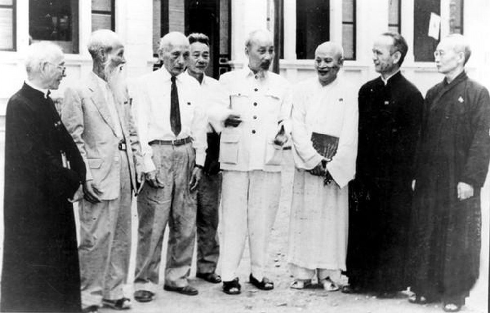Ngày 03/9/1945, khi đề ra những nhiệm vụ cấp bách của Nhà nước Việt Nam Dân chủ Cộng hòa, Hồ Chủ tịch nêu 6 vấn đề cấp bách hơn cả, trong đó có vấn đề thứ 6: “Tôi đề nghị Chính phủ ta tuyên bố: Tín ngưỡng tự do và Lương - Giáo đoàn kết” vì thực dân và phong kiến thi hành chính sách chia rẽ đồng bào Giáo và Lương để thống trị. Bác Hồ đã dành nhiều thời gian cho tôn giáo, cẩn thận và mềm mỏng trong khi giải quyết những vấn đề liên quan đến tôn giáo.