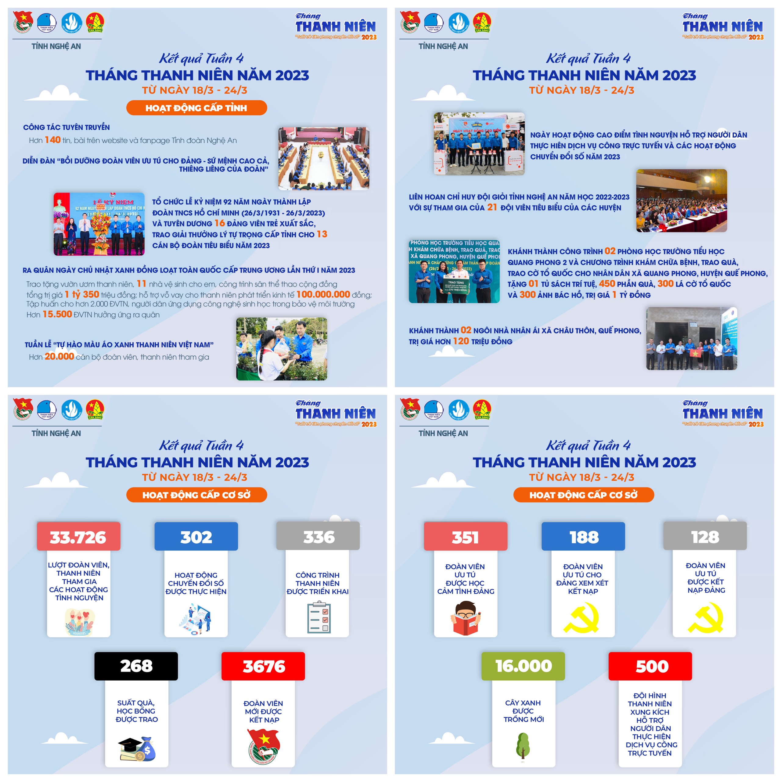Những con số nổi bật trong tuần 4 Tháng Thanh niên năm 2023. Infographics: Tỉnh đoàn Nghệ An