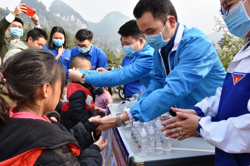 Tuổi trẻ Lào Cai phát thuốc, nước rửa tay, khẩu trang miễn phí cho người dân xã Tung Chung Phố, huyện Mường Khương
