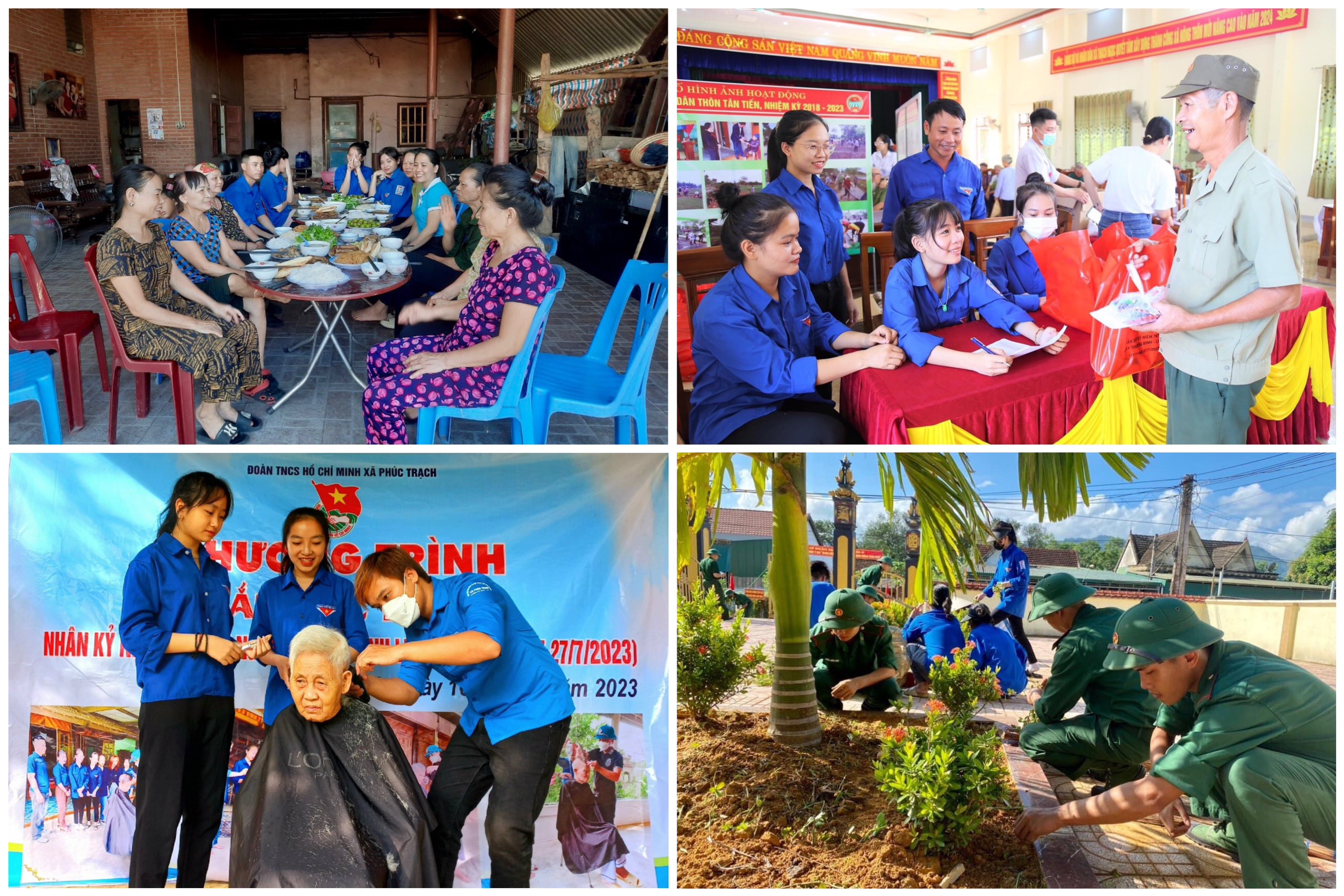 Các cấp bộ Đoàn, Hội toàn tỉnh tổ chức hơn 300 buổi sinh hoạt chính trị “Đền ơn đáp nghĩa - Uống nước nhớ nguồn” với hơn 36.300 đoàn viên, thanh thiếu nhi tham gia; triển khai 480 đợt hành hương về địa chỉ đỏ, khu di tích lịch sử, đài tưởng niệm, nghĩa trang liệt sỹ cho 12.700 đoàn viên, thanh thiếu nhi. Tuổi trẻ toàn tỉnh triển khai 1.100 công trình phần việc tri ân, đền ơn đáp nghĩa với tổng trị giá hơn 2,2 tỷ đồng; trao tặng hơn 3.800 suất quà trị giá gần 500 triệu đồng và tổ chức gần 200 bữa cơm nghĩa tình cho thân nhân các anh hùng liệt sỹ, thương bệnh binh, mẹ Việt Nam anh hùng, cựu TNXP, gia đình chính sách; triển khai hơn 40 đợt khám, cấp phát thuốc miễn phí cho hơn 6.000 thương bệnh binh, đối tượng chính sách; xây mới 7 nhà nhân ái và sửa chữa 45 ngôi nhà cho cựu TNXP, thân nhân AHLS với tổng trị giá hơn 1,1 tỷ đồng; gần 7.800 đoàn viên thanh niên tham gia phá bỏ 660 vườn hộ, vườn tạp; tổ chức thắp nến tri ân các anh hùng liệt sỹ đồng loạt toàn tỉnh tại 230 nghĩa trang, khu tưởng niệm với hơn 23.000 đoàn viên thanh niên tham gia; cùng với đó đã có hơn 3.800 lượt đoàn viên, thanh thiếu nhi tham gia nhắn tin Tri ân liệt sỹ.