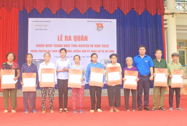 Tại chương trình, đồng chí Triệu Tiến Trình - Phó Bí thư Tỉnh đoàn, Phó Chủ tịch Hội đồng Đội tỉnh đã phát động Lễ ra quân, đánh trống, trao cờ lệnh cho Huyện đoàn Chợ Đồn; trao 10 suất quà cho gia đình cựu TNXP, gia đình chính sách, gia đình có hoàn cảnh khó khăn.