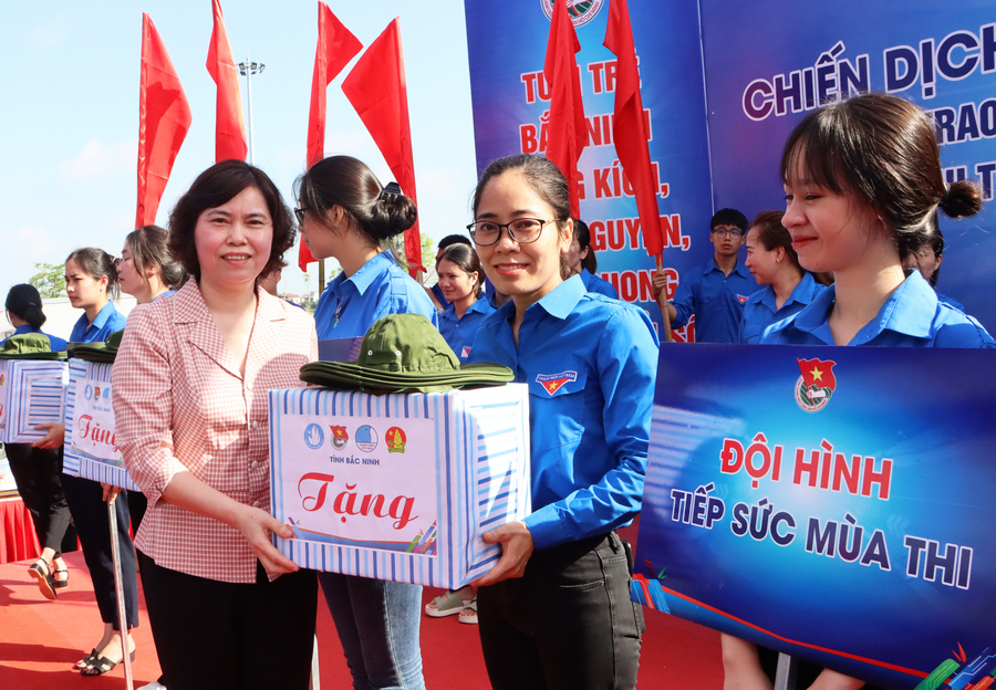 Nhân dịp này, đồng chí Trần Thị Hằng, Phó Chủ tịch Thường trực HĐND tỉnh đã thay mặt lãnh đạo tỉnh trao cờ chỉ huy và tặng quà cho 07 đội hình thành niên tình nguyện cấp tỉnh trong chiến dịch. Cùng với đó, Ban Thường vụ Tỉnh Đoàn cũng đã trao tặng 15 suất quà cho các em học sinh có hoàn cảnh khó khăn trên địa bàn phường Cách Bi, với mong muốn phần nào giúp các em vượt qua khó khăn, ổn định cuộc sống, phấn đấu trở thành người có ích cho xã hội.
