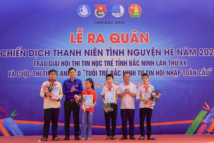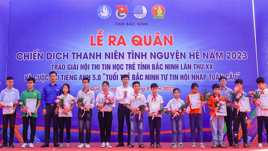 Trong khuôn khổ buổi lễ, Ban Thường vụ Tỉnh Đoàn cùng đại diện lãnh đạo các Sở, Ban, Ngành, thị xã Quế Võ và các đơn vị đồng hành đã trao giải cho các thí sinh có thành tích xuất sắc trong Hội thi Tin học trẻ tỉnh lần thứ XX và Cuộc thi Tiếng Anh 5.0 Bắc Ninh.