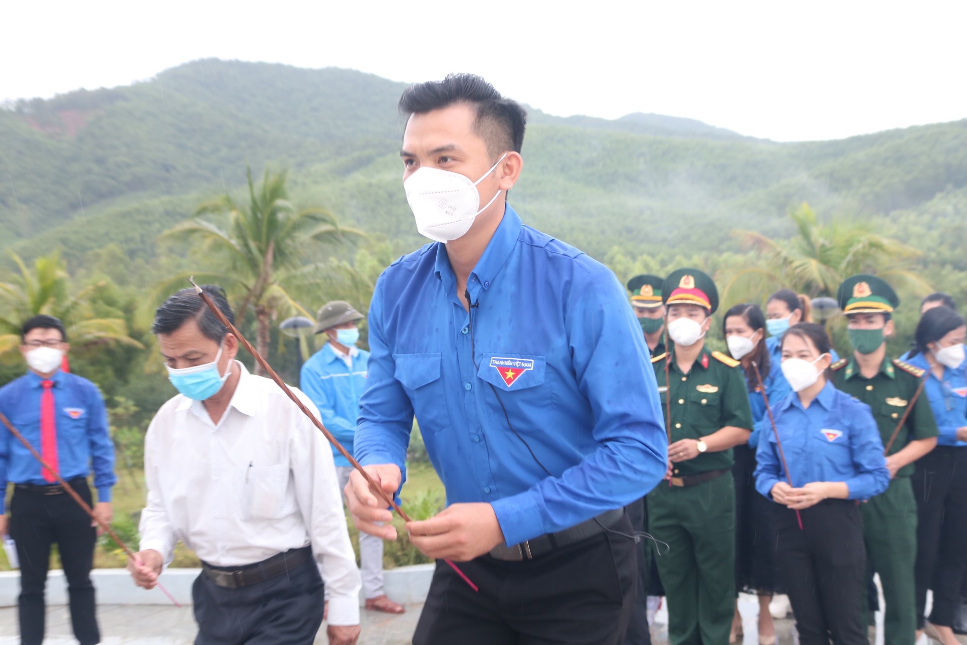 Đồng chí Phạm Hồng Hiệp - Phó Bí thư Tỉnh đoàn dâng hương tại di tích tàu không số Lộ Diêu