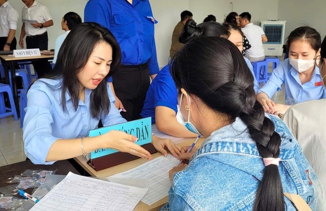 Các bạn trẻ hỗ trợ người lao động sử dụng công nghệ trong giải quyết các thủ tục hành chính