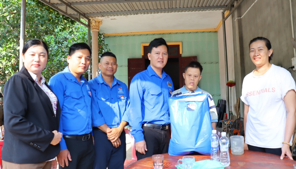Đồng chí Trần Hoàng Trực - Bí thư Tỉnh Đoàn trao tặng quà cho các cán bộ Đoàn và Đoàn viên.